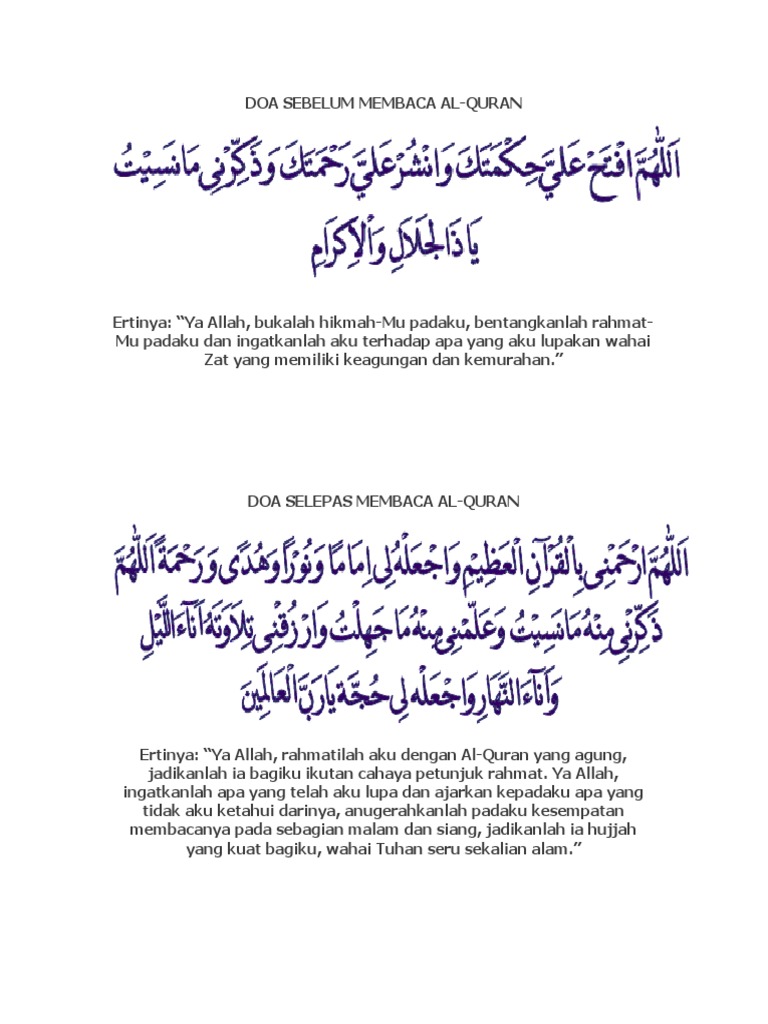 Doa Sebelum Dan Selepas Membaca Al Quran Rumi Jawi